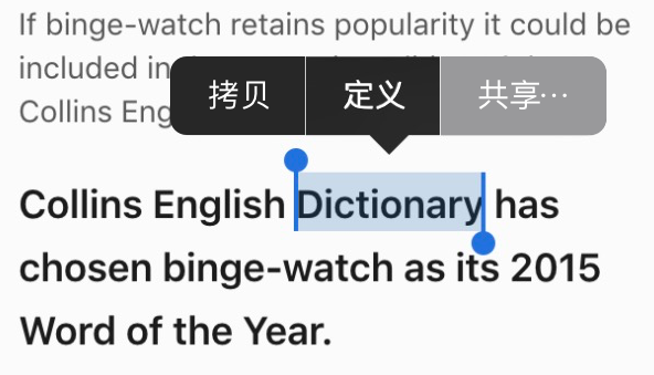 （1）在任意程序（比如 Safari 浏览器）中，长按选择需要翻译的单词。